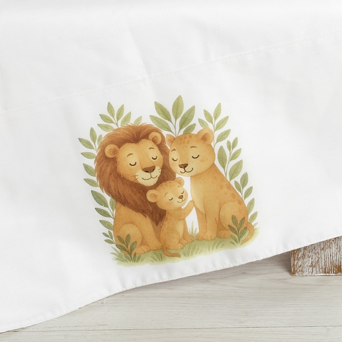 Λαδόπανα: Πλήρες σετ (πετσέτες, εσώρουχα) από 100% βαμβάκι, με τυπωμένη φάσα απόλυτα εναρμονισμένη με την παράσταση των λιονταριών.