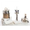 Σετ Λαδιού: Λευκό ξύλινο stand με πατίνα που περιλαμβάνει μπουκάλι λαδιού, σαπούνι και 3 κεράκια κολυμπήθρας, όλα ασορτί διακοσμημένα με σχοινιά.