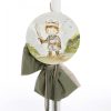 Λαμπάδα: Εντυπωσιακός στολισμός με λαδί και μπεζ υφάσματα, χοντρά σχοινιά και ένα στρογγυλό ξύλινο κάδρο που απεικονίζει τον μικρό ιππότη.