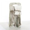 Σετ Λαδιού: Ξύλινο stand με πατίνα που περιλαμβάνει μπουκάλι λαδιού, σαπούνι και 3 κεράκια κολυμπήθρας, όλα ασορτί διακοσμημένα με λαδί και γήινα λεπτά σχοινάκια.