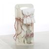 Σετ Λαδιού: Λευκό ξύλινο stand με πατίνα που περιέχει μπουκάλι λαδιού, σαπούνι και 3 κεράκια, όλα ασορτί διακοσμημένα με σατέν φιόγκους και πέρλες.