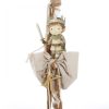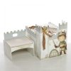 Ξύλινο Κουτί-Κάστρο: Χειροποίητη κατασκευή σε σχήμα κάστρου με πολεμίστρες, διακοσμημένο με την εικονογράφηση ενός γενναίου μικρού ιππότη με σπαθί. Περιλαμβάνει ξύλινο μονόγραμμα (π.χ. “K”) στην πύλη και στολισμό με χοντρά σχοινιά σε γήινες αποχρώσεις. (Διαστάσεις: 35cm x 36cm x 42cm).