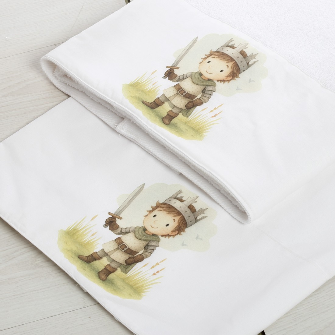 Λαδόπανα: Πλήρες σετ (πετσέτες, εσώρουχα) από 100% βαμβάκι, με τυπωμένη την παράσταση του ιππότη.