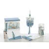 Σετ Λαδιού: Λευκό ξύλινο stand που περιλαμβάνει μπουκάλι λαδιού, σαπούνι και 3 κεράκια, όλα ασορτί διακοσμημένα με τα χαρακτηριστικά τιρκουάζ σχοινιά της συλλογής.