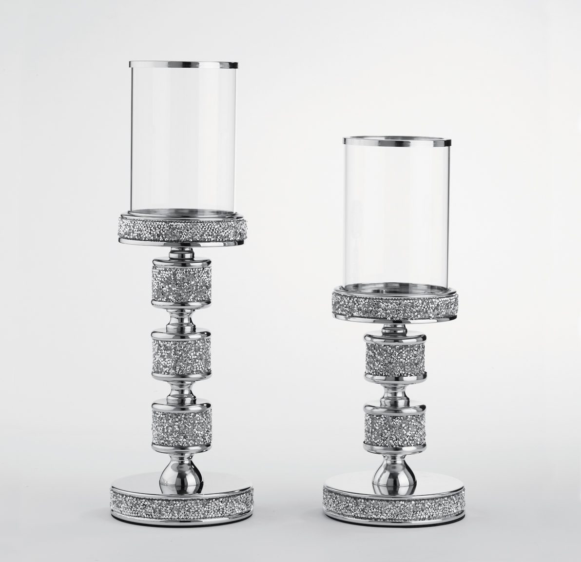 Λαμπάδες γάμου κηροπήγιο σετ σε ασημί χρώμα με γυαλί στο επάνω μέρος.