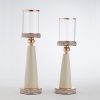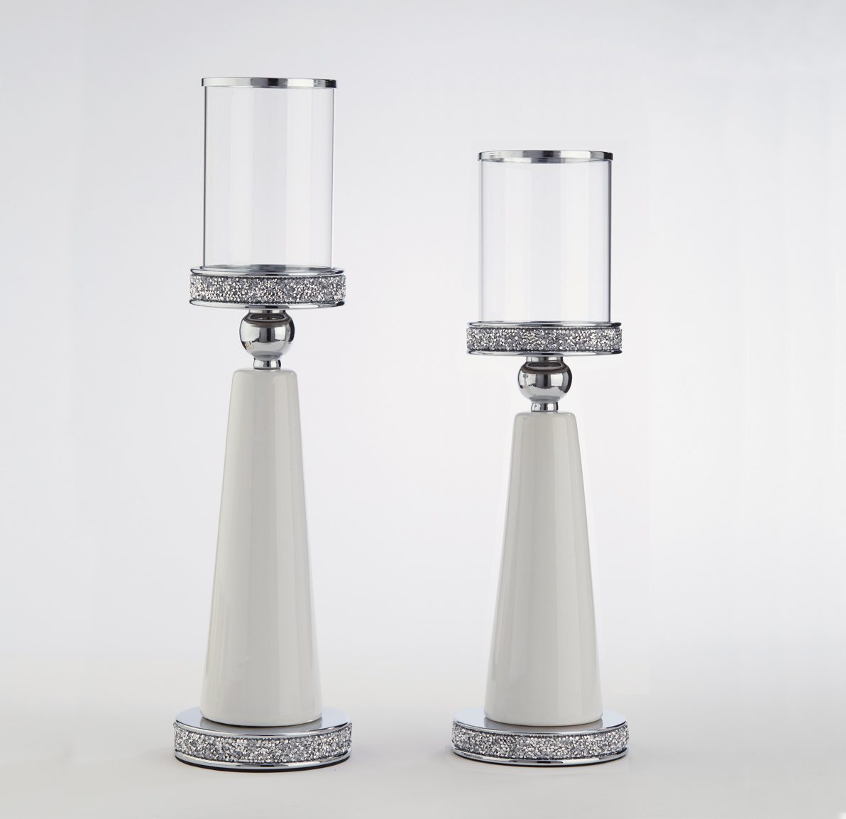 Σετ λαμπάδων γάμου με λευκά κηροπήγια, ασημένια λεπτομέρεια και γυάλινο επάνω μέρος