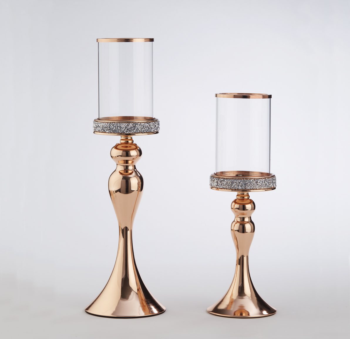 Σετ λαμπάδων γάμου με χρυσά κηροπήγια και γυάλινο επάνω μέρος