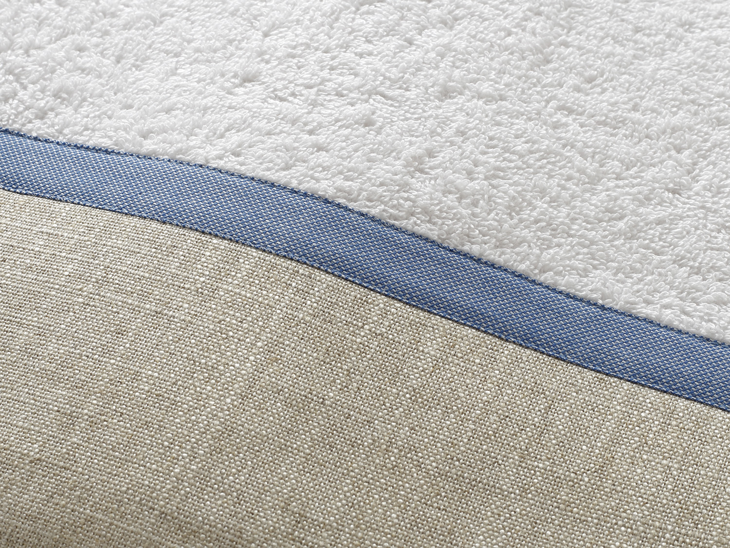 Άσπρη πετσέτα με μια μεγάλη φάσα σε μπεζ χρώμα και μια μικρή σε ραφ,διαστάσεων 1,40m x 0,80m.