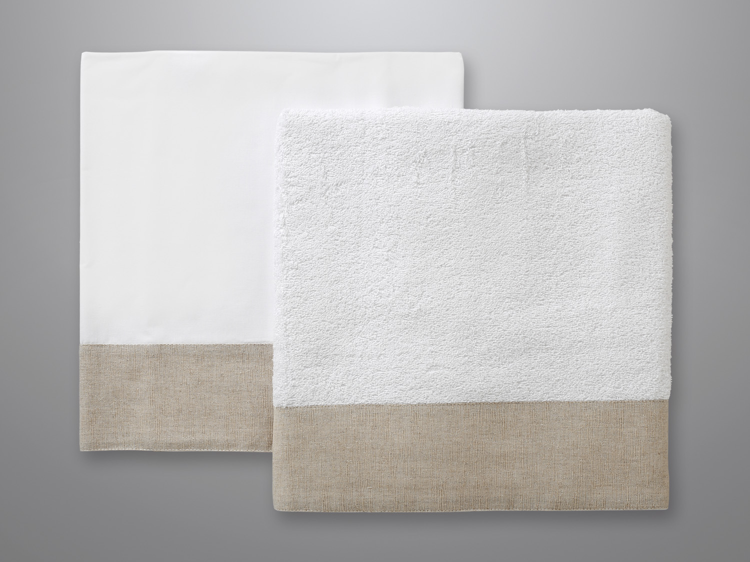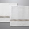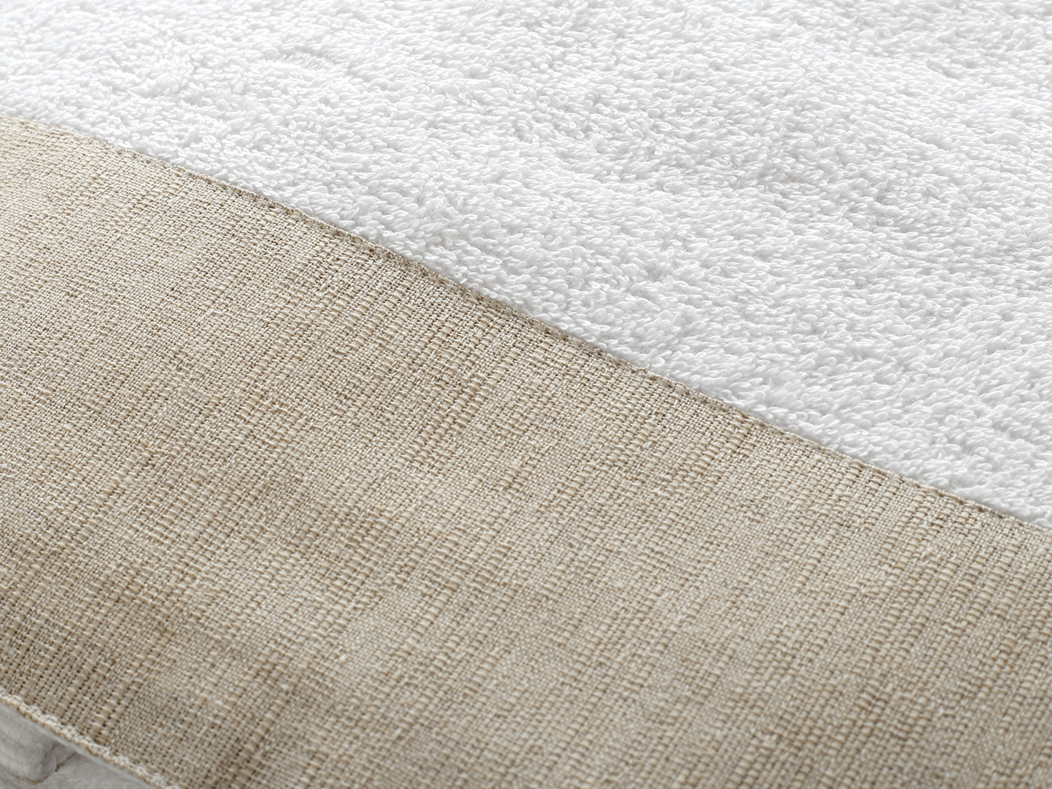 Άσπρη πετσέτα με μια μεγάλη φάσα μπεζ, διαστάσεων 1,40m x 0,80m.