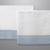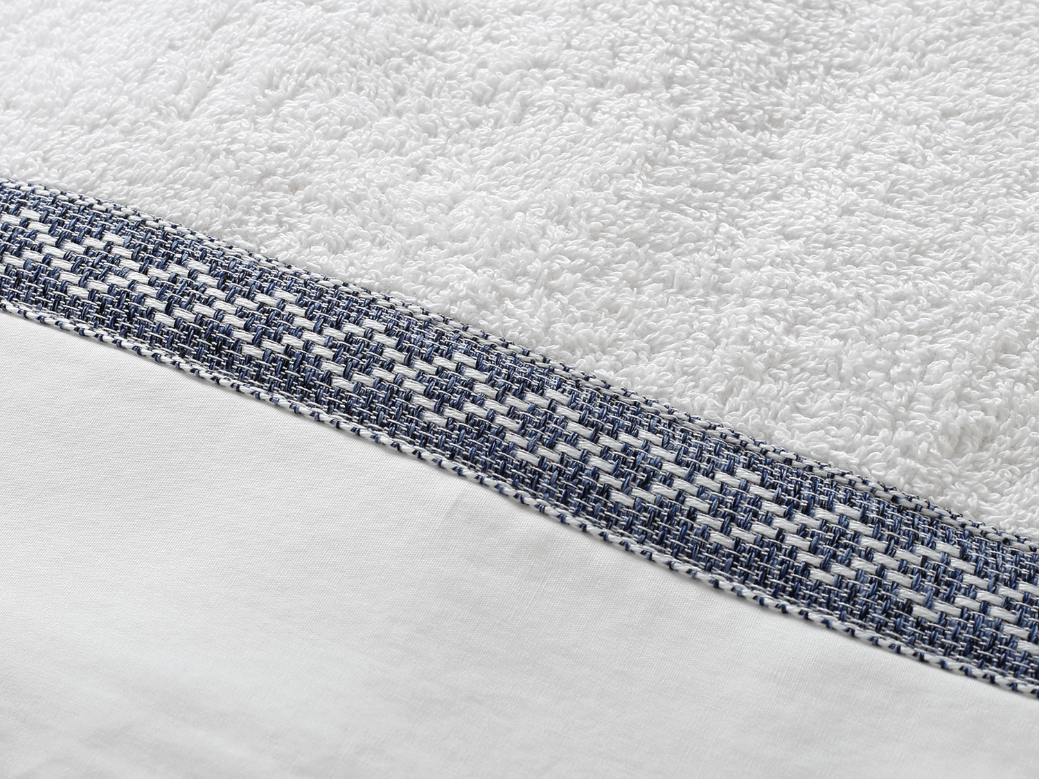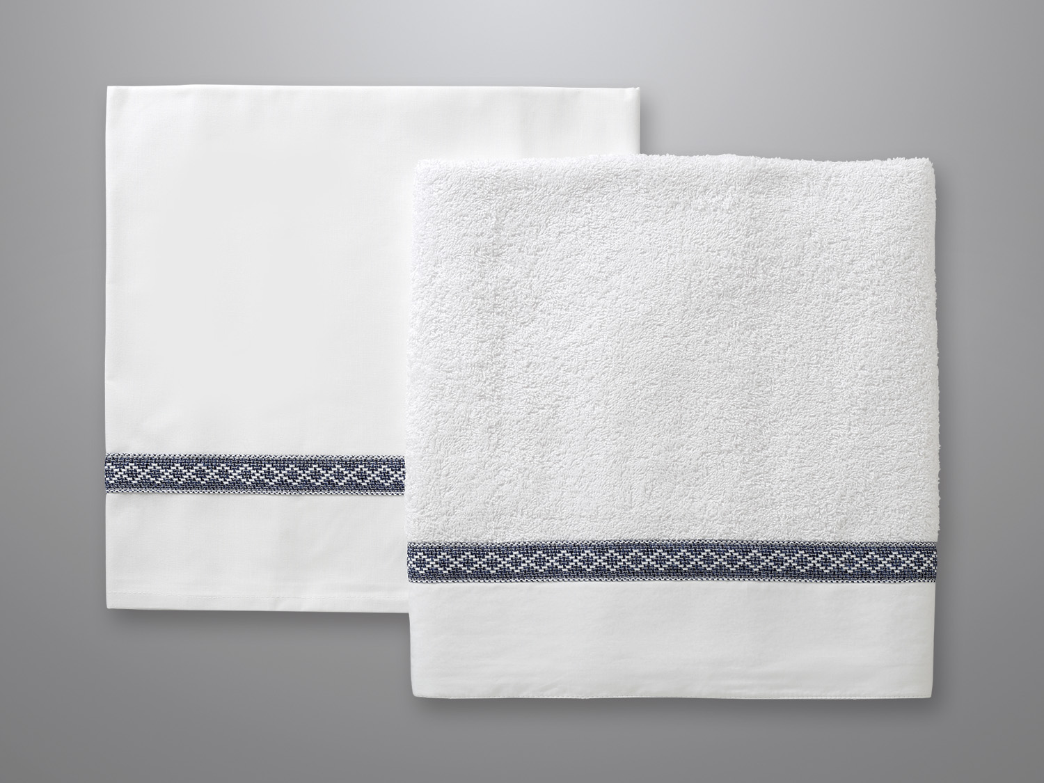 Άσπρη πετσέτα με μια μπλε κορδέλα, διαστάσεων 1,40m x 0,80m.