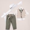 Βαμβακερά εσώρουχα σε εκρού χρώμα, που αποτελούνται από σκουφάκι, φανελάκι και βρακάκι.