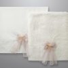 Πάνω στη φάσα είναι ραμμένος ένας φιόγκος από εκρού δαντελάκι και ένα λουλούδι από σάπιο μήλο τούλι.