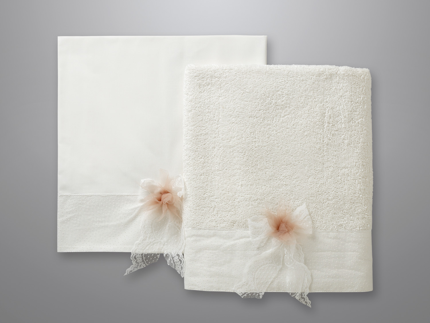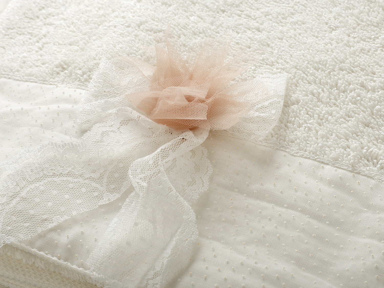 Εκρού πετσέτα με μια μεγάλη φάσα από εκρού πουά τούλι, διαστάσεων 1,40m x 0,80m.