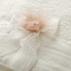 Εκρού λαδόπανο με μεγάλη φάσα εκρού πουά τούλι με ραμμένο λουλούδι πάνω σε φιόγκο.