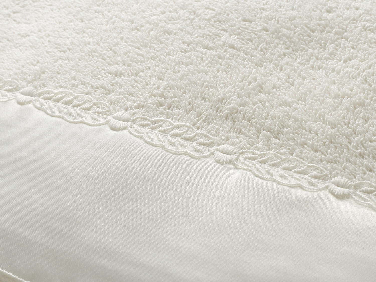 Εκρού πετσέτα με μια μεγάλη φάσα από εκρού σατέν, διαστάσεων 1,40m x 0,80m.