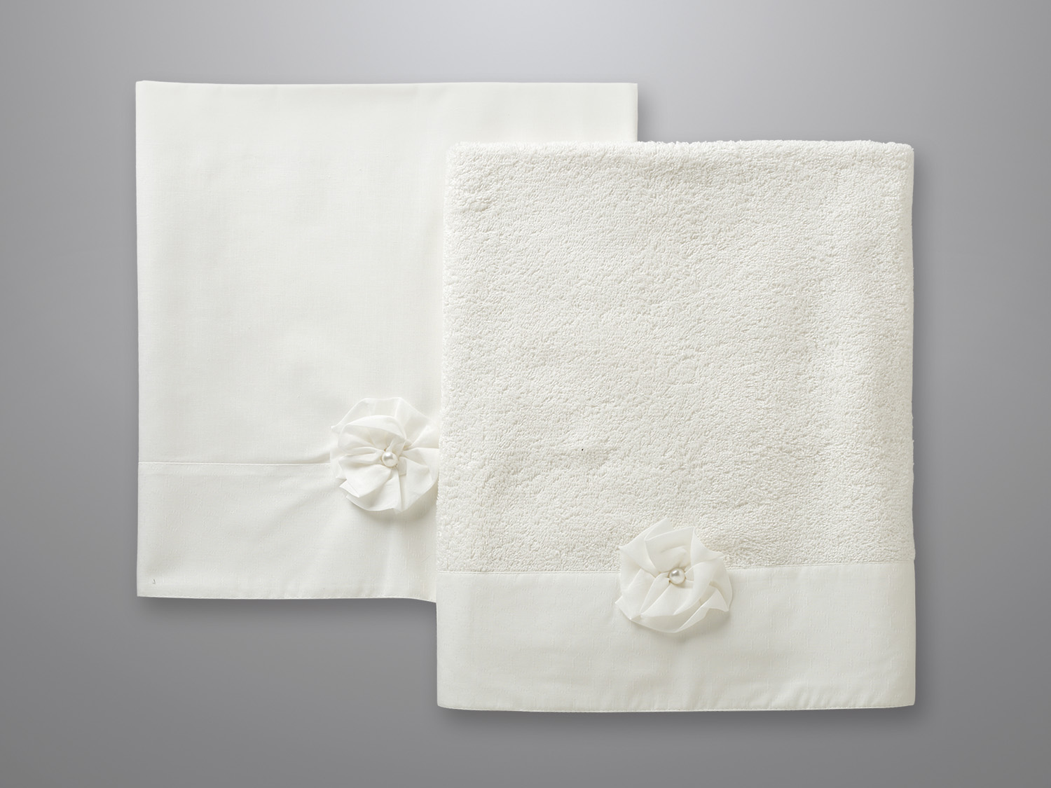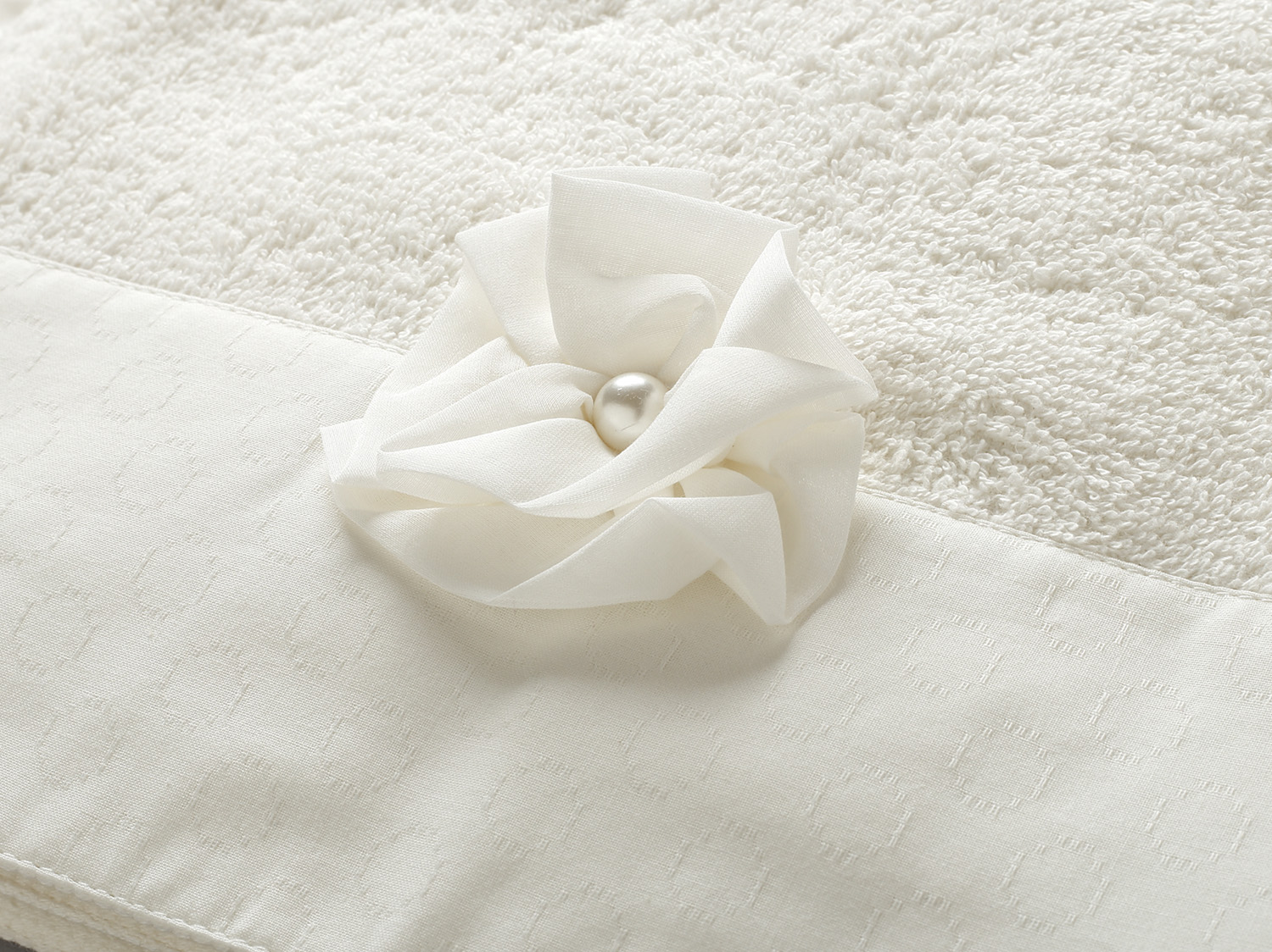 Εκρού πετσέτα με μια μεγάλη φάσα από εκρού βαμβακερή ποπλίνα, διαστάσεων 1,40m x 0,80m.