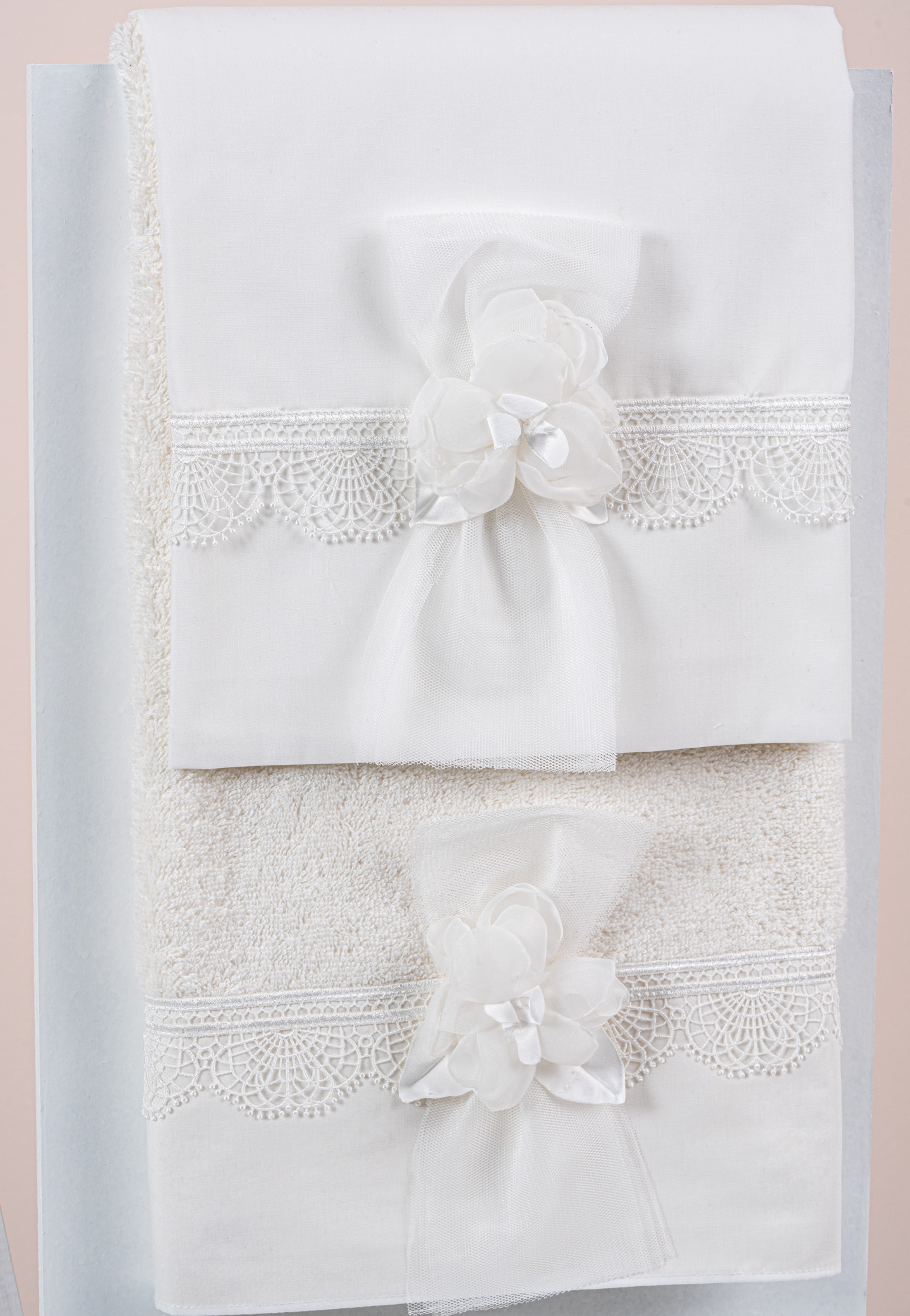 εσώρουχα και πετσέτα ιερέα 30*50εκ. Στολισμένα με χειροποίητα υφασμάτινα λουλούδια.