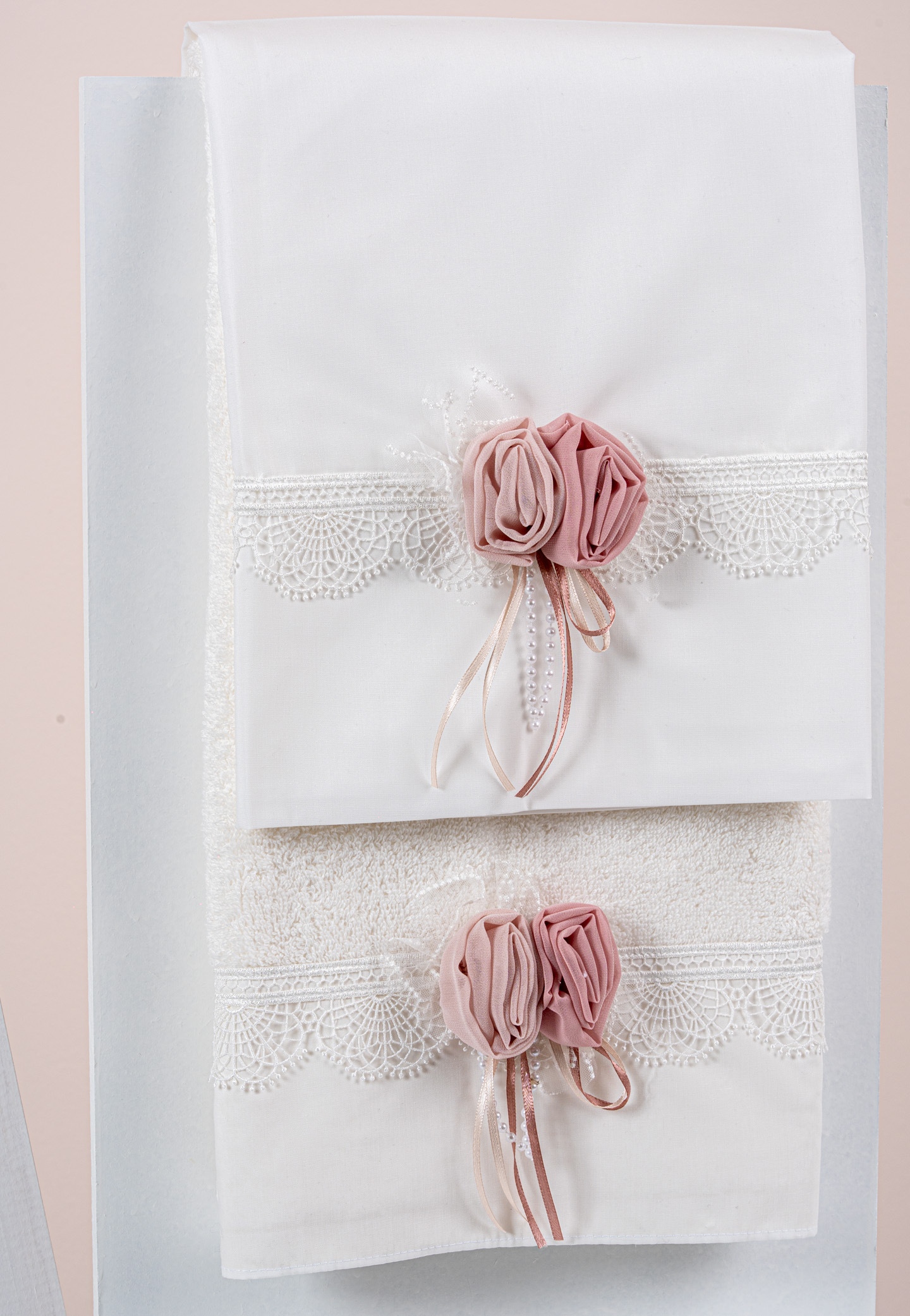 εσώρουχα και πετσέτα ιερέα 30*50εκ. Στολισμένα με χειροποίητα υφασμάτινα λουλούδια.