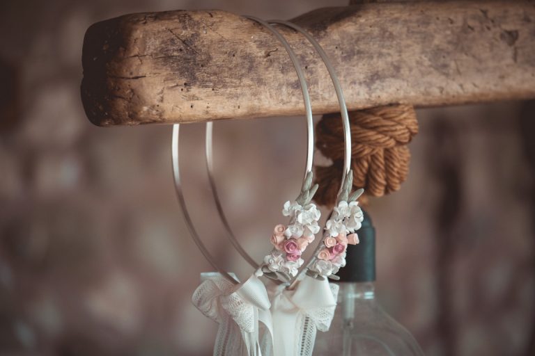Στέφανα γάμου επάργυρα με πορσελάνη MS306γ