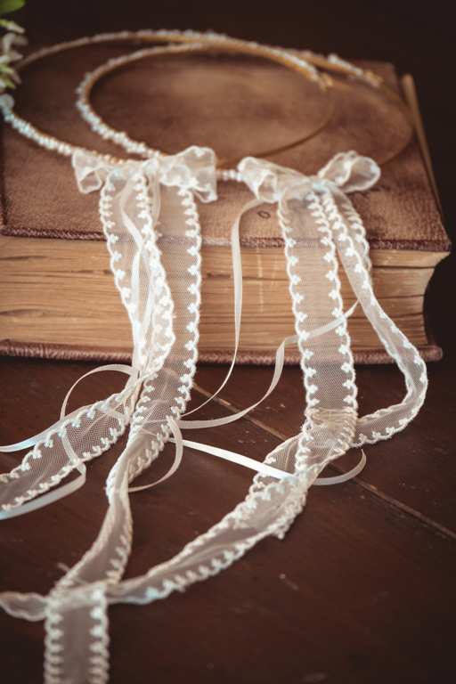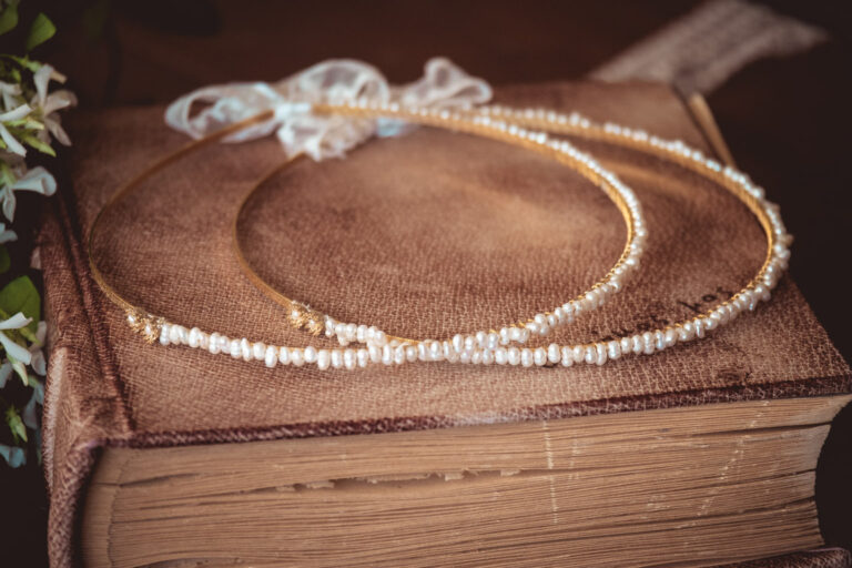 Τα στέφανα συνοδεύονται από πολυτελές κουτί και δύο καρφίτσες, γαμπρού και κουμπάρου.