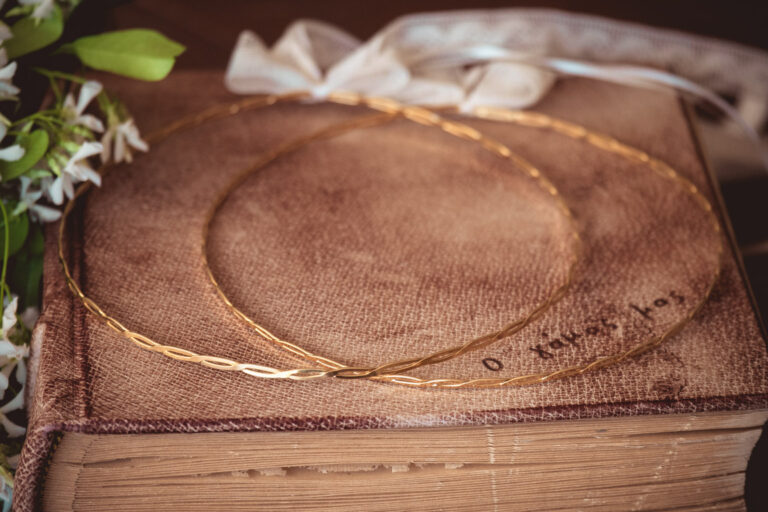Απλό μα και τόσο ξεχωριστό! Επίχρυσα στέφανα δεμένα με δαντέλα.