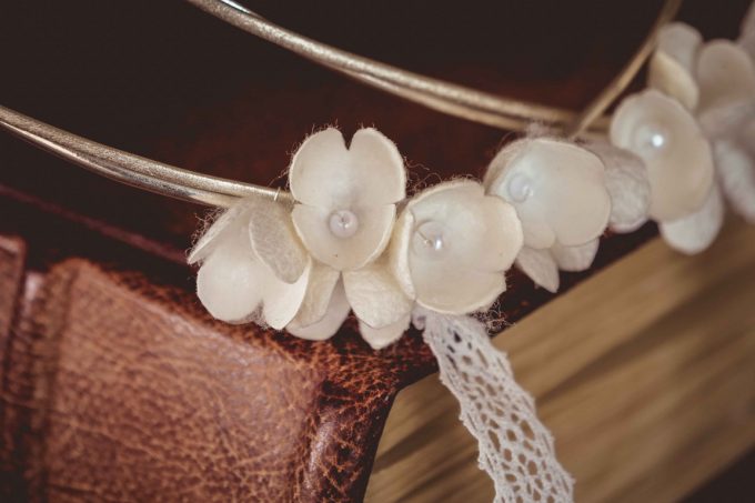 με μεταξωτά λουλούδια στο πίσω μέρος.