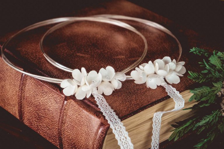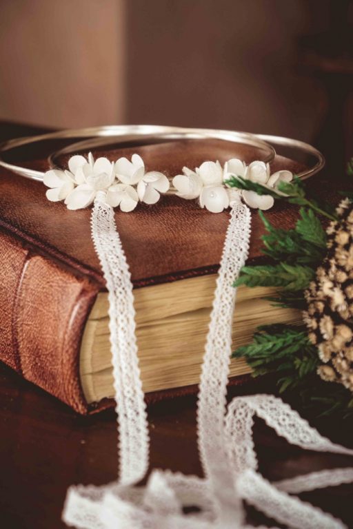 Τα στέφανα συνοδεύονται από πολυτελές κουτί και δύο καρφίτσες, γαμπρού και κουμπάρου.