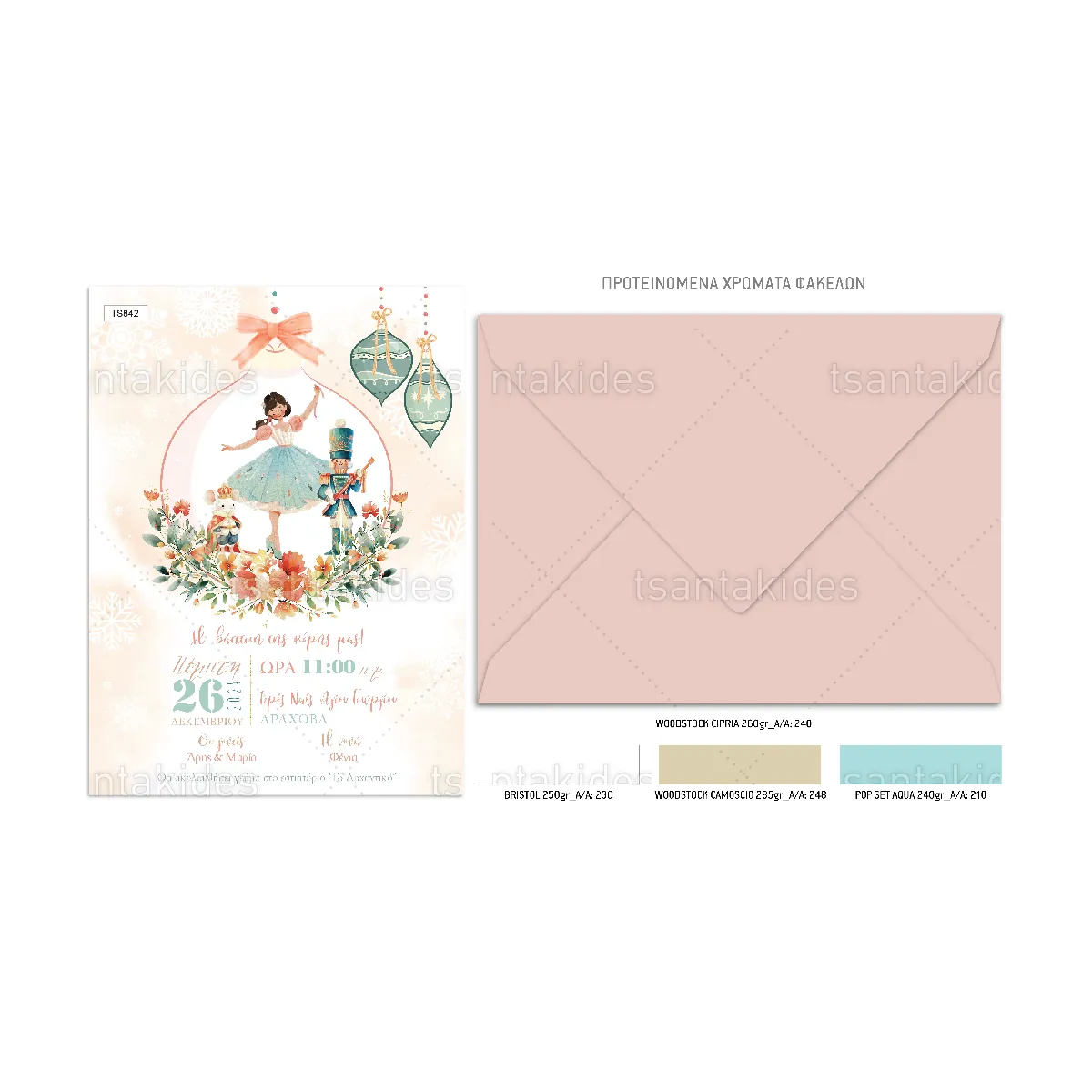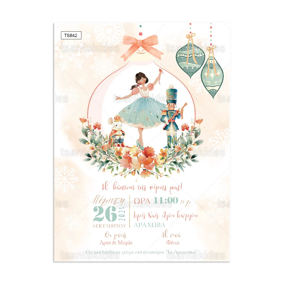 Χριστουγεννιάτικο Προσκλητήριο βάπτισης με θέμα Christmas Ballerina TS842