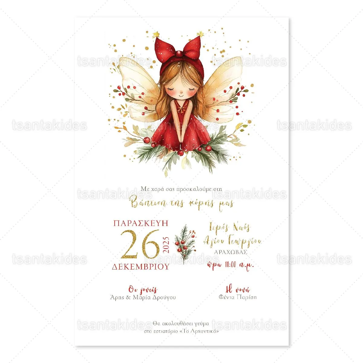 Χριστουγεννιάτικο Προσκλητήριο βάπτισης με θέμα Xmas Fairy TS1956
