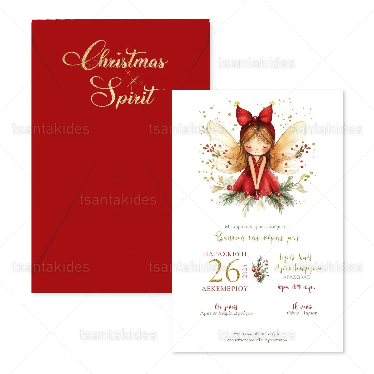 Προσκλητήριο βάπτισης Χριστουγεννιάτικο για κορίτσι με θέμα Xmas Fairy.