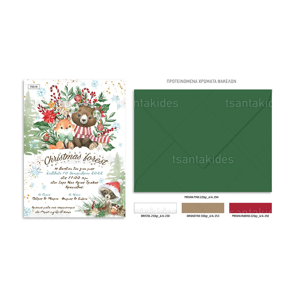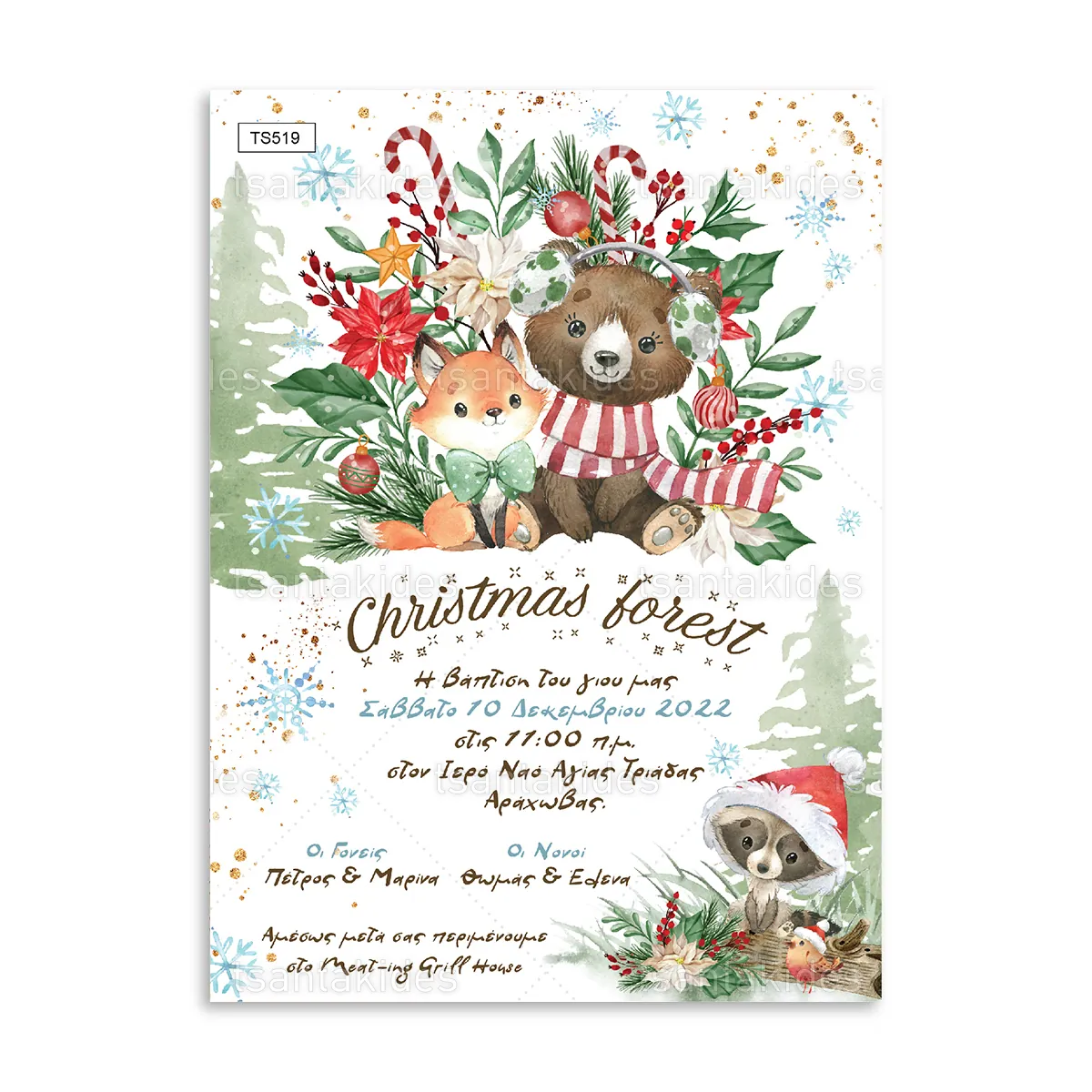 Χριστουγεννιάτικο Προσκλητήριο βάπτισης με θέμα Christmas Forest TS519