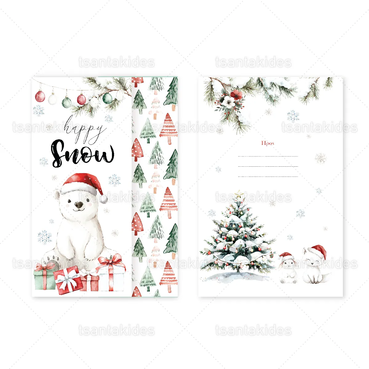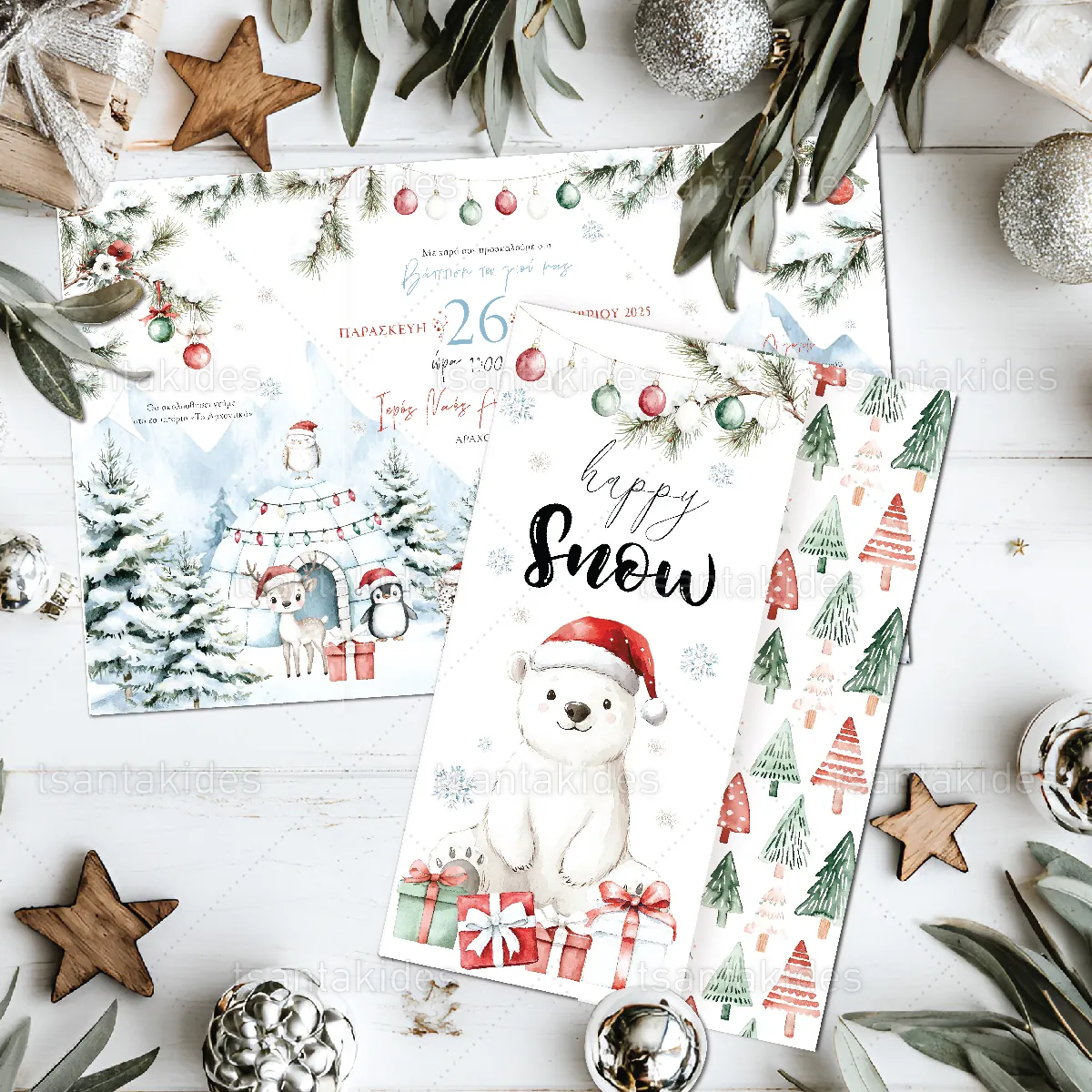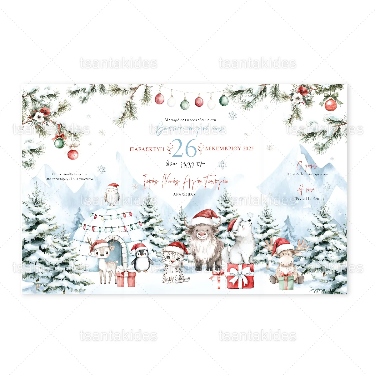 Χριστουγεννιάτικο Προσκλητήριο βάπτισης Τρίπτυχο με θέμα Polar Friends TS1951