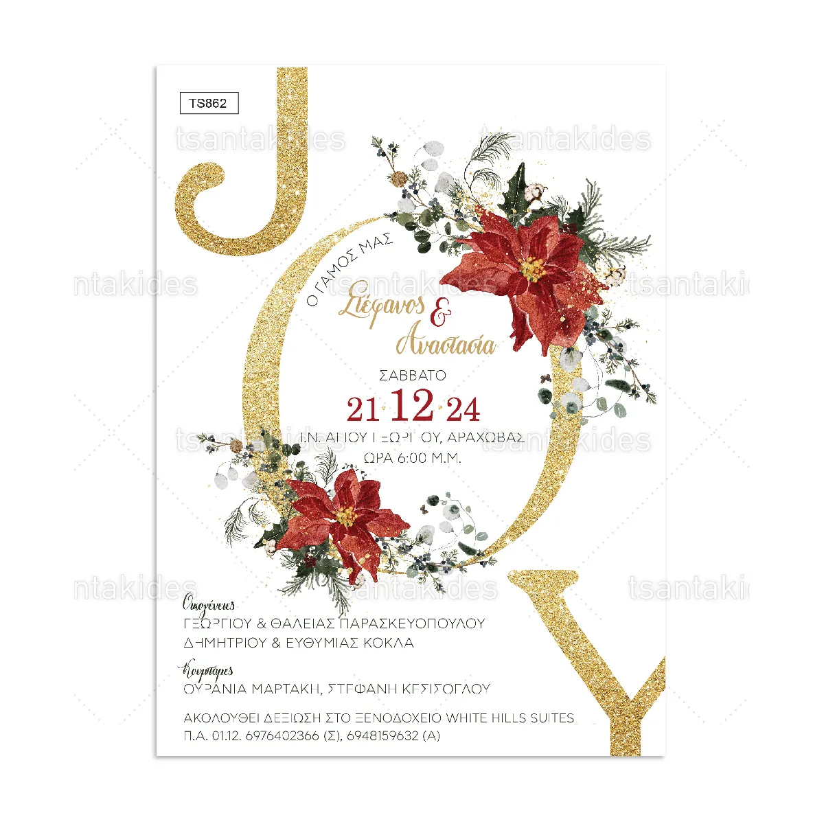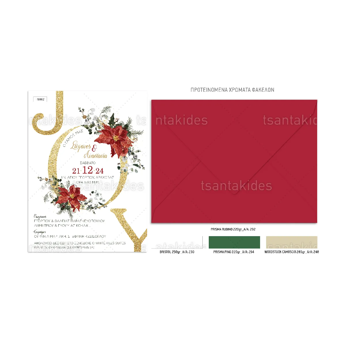 Προσκλητήριο γάμου Christmas Joy. Η κάρτα του προσκλητηρίου είναι τυπωμένη σε λευκό ματ χαρτί 250γρ.